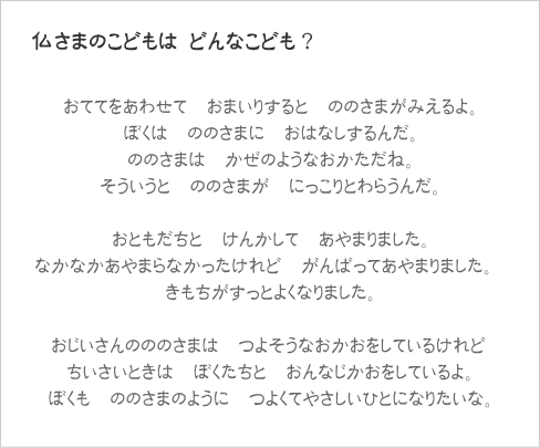 | 宗教教育 | 合掌礼拝を通して、祖先を大切にする心・感謝の心を育みます。 |